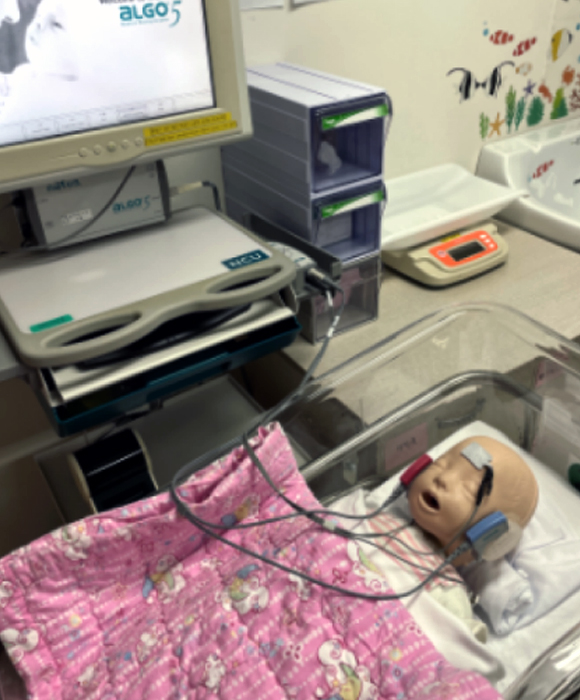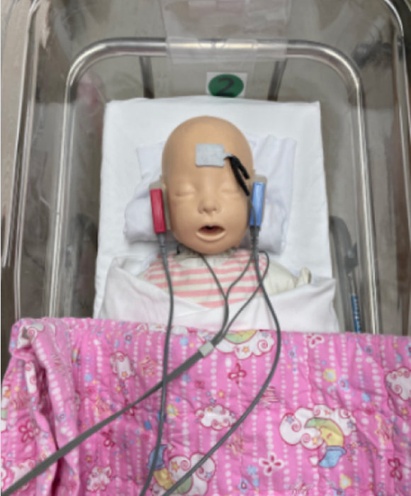 신생아 난청을 조기에 진단하기 위해 헤드폰을 통하여 환아의 양쪽 귀에 음향 자극을 번갈아 준 후 피부에 부착된 전극을 통해 뇌의 반응을 확인하는 것으로, 환아에게 통증을 유발하지 않으며 안전한 검사 방법입니다.